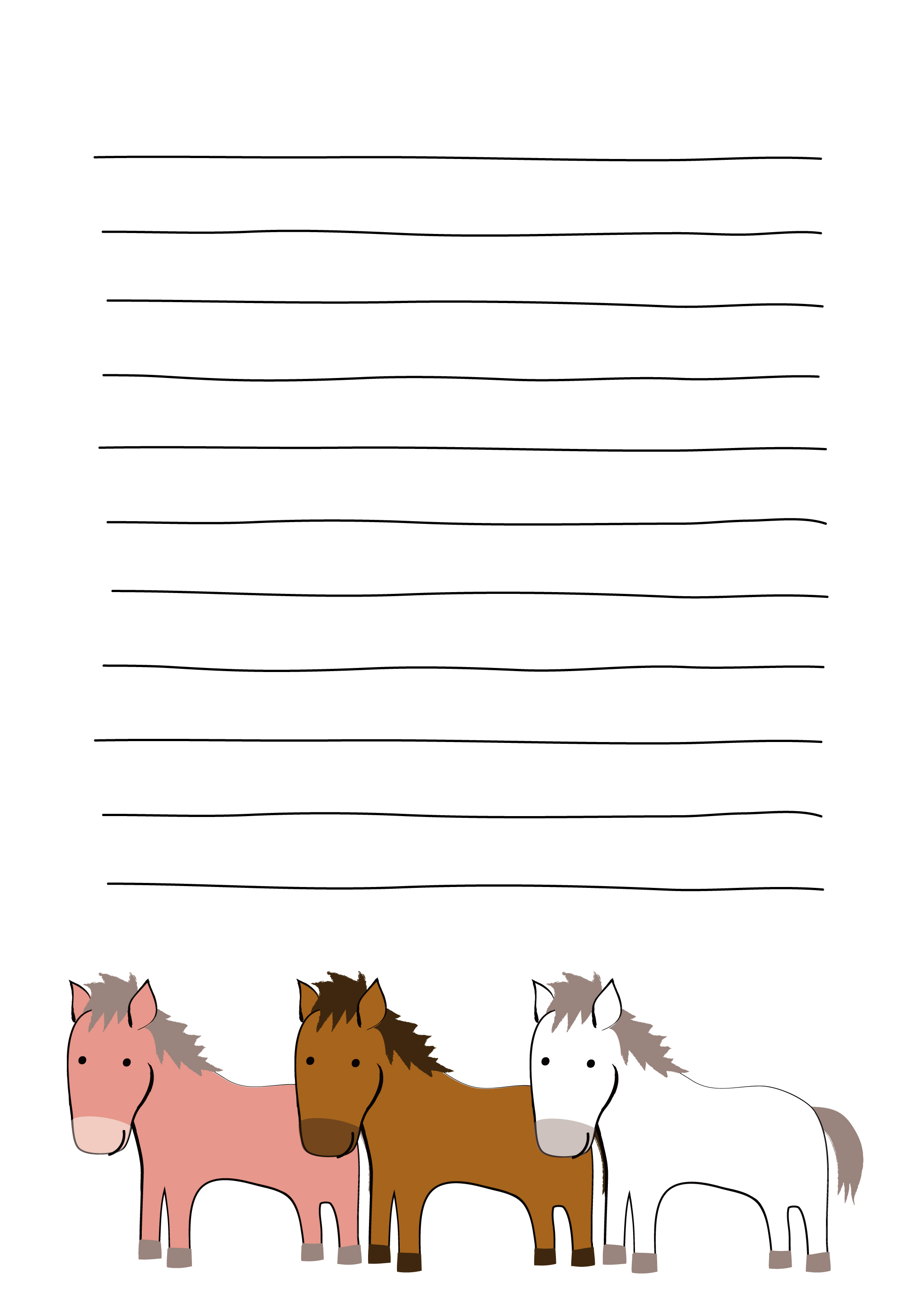 こちらを見つめるおしゃれな馬たちの便箋テンプレートです